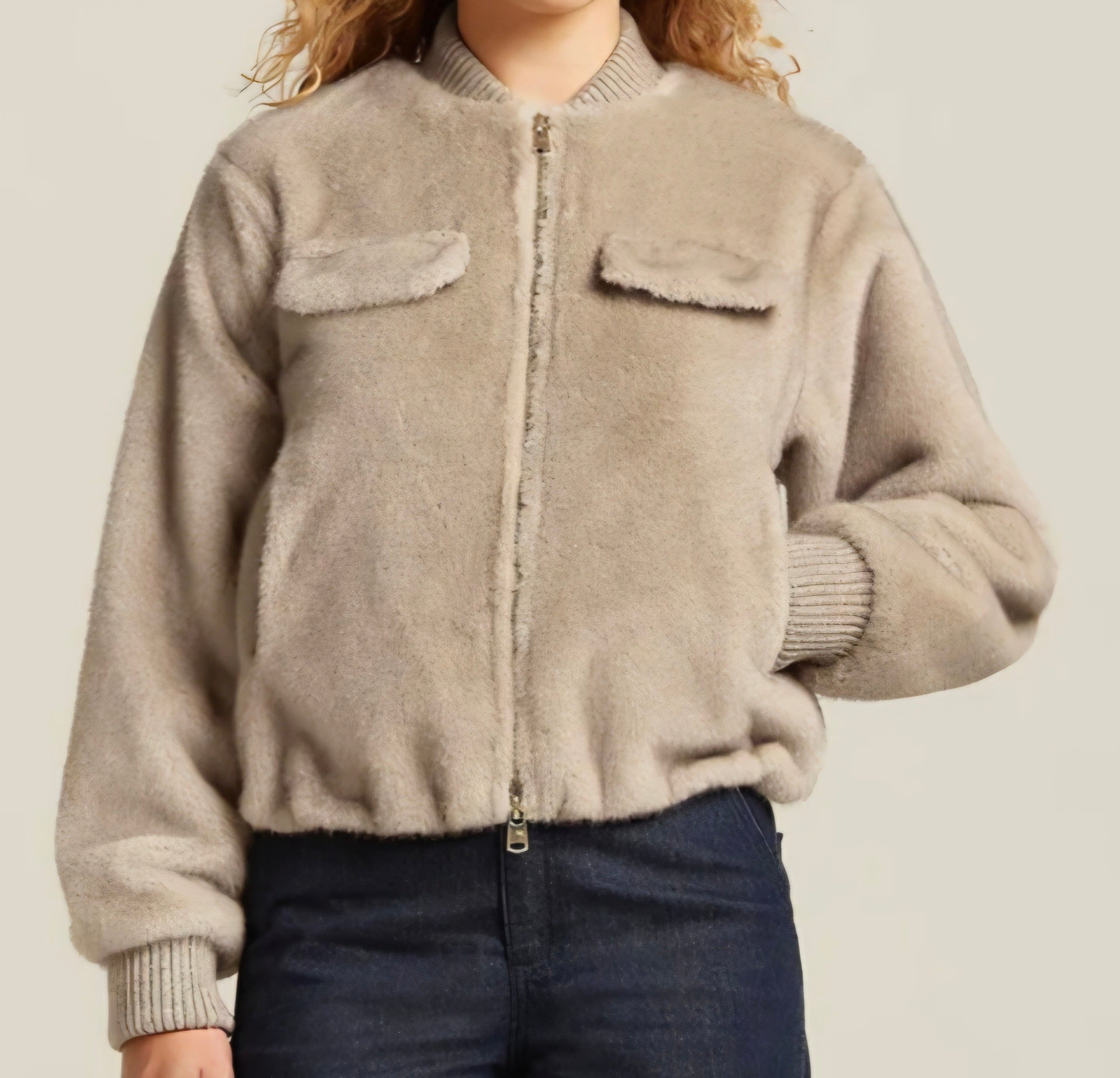 Bomber jacket in luxurious melange faux fur